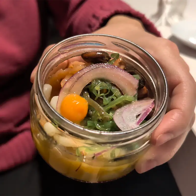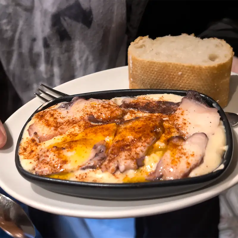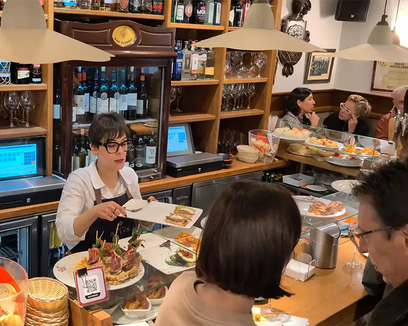 It is right next to Plaza del Castillo and is one of the city’s most traditional spots. The bar is always packed and has that authentic old-school counter feel, but the snacks are much more elaborate and creative than your average pintxo. It is the perfect choice if you want to skip the basics and try dishes with better presentation and bolder flavours.