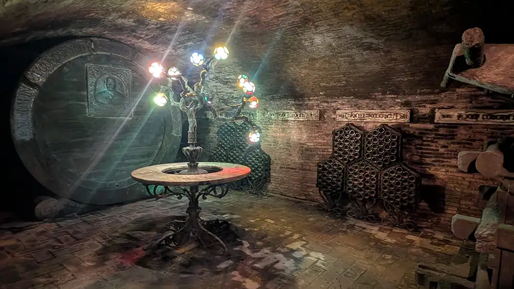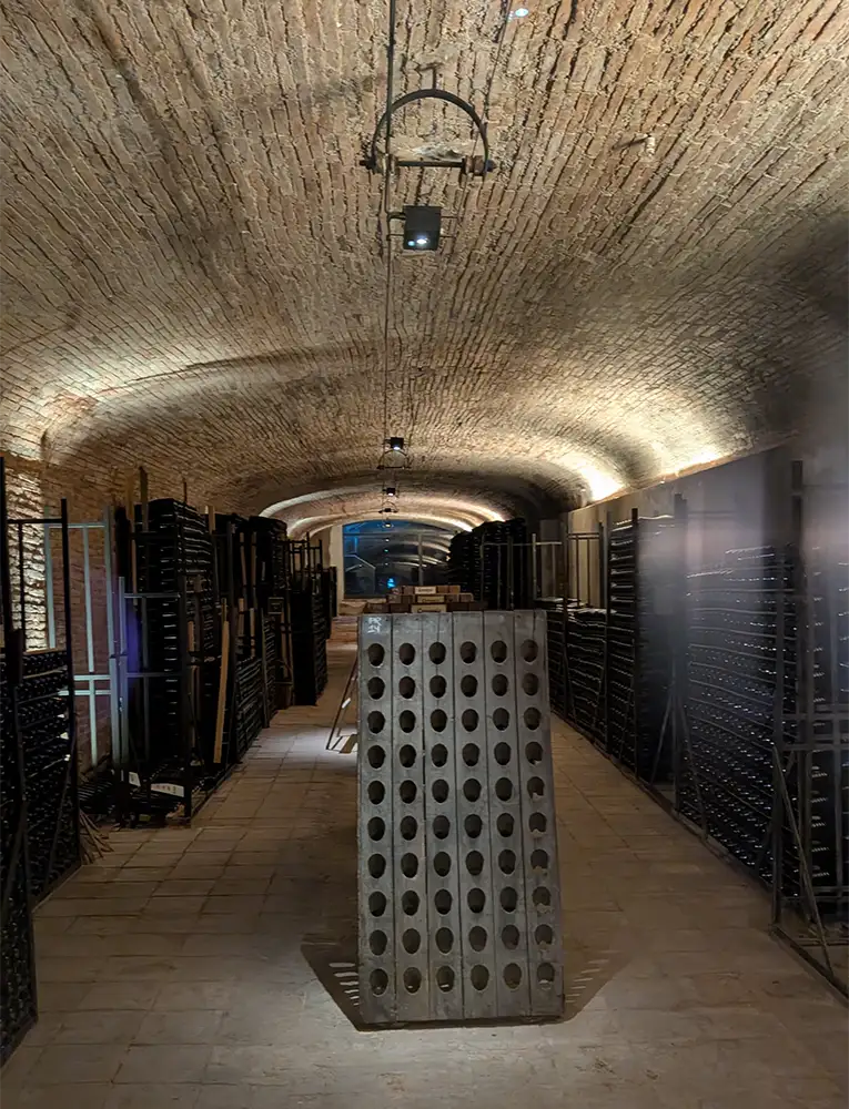A experiência é sensacional: o trem cruza corredores extensos e salas na penumbra, algumas quase no escuro total. Entre uma curva e outra, você se vê cercado por milhares de garrafas empoeiradas envelhecendo ali. É a parte mais divertida do passeio e a única forma de ter a real dimensão do tamanho desse labirinto subterrâneo.